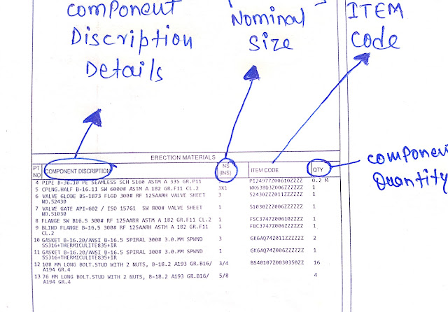 - Material description for Pipe is described in Piping isoemtric drawing on top right corner.